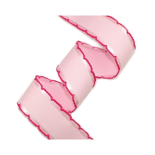 연핑크 양단리본에 체리핑크색실 피코트리본입니다.