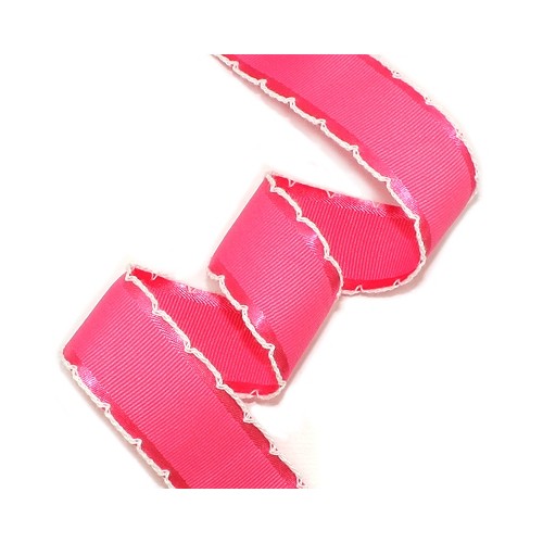 체리핑크색 공단리본에 흰색실 피코트리본입니다.