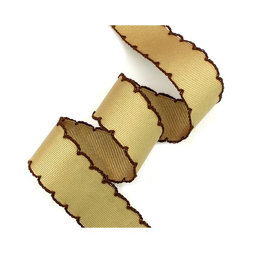 코코아색 골직리본에 밤색실 피코트리본입니다.