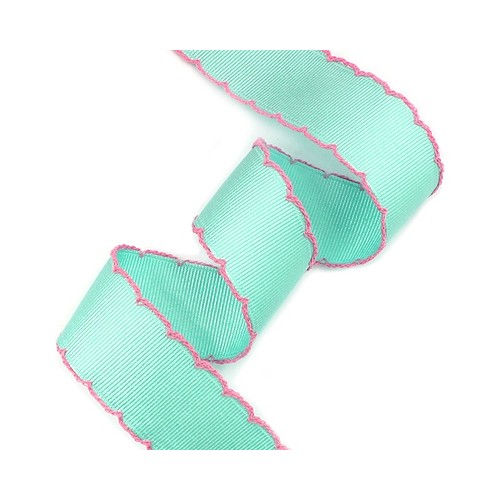 민트색 골직리본에 핑크색실 피코트리본입니다.