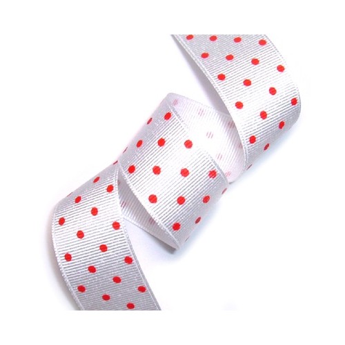 흰색 골지에 빨강색 땡땡이 프린트 리본입니다.