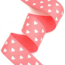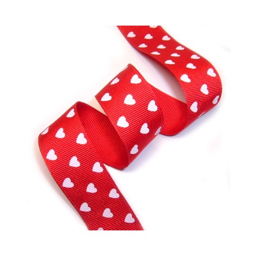 빨강색 골지리본에 흰색 하트 프린트된 리본입니다.