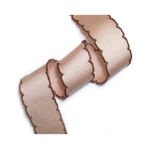 베이지색 골직리본에 밤색실 피코트 리본입니다.