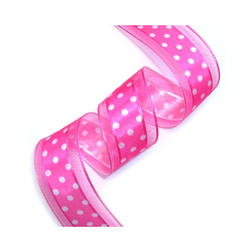 체리핑크/흰색 땡땡이(평직오간디) > 평직 오간디