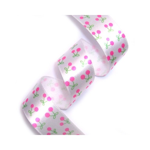 흰색공단에 체리핑크색 귀여운 체리모양 프린트 리본입니다.