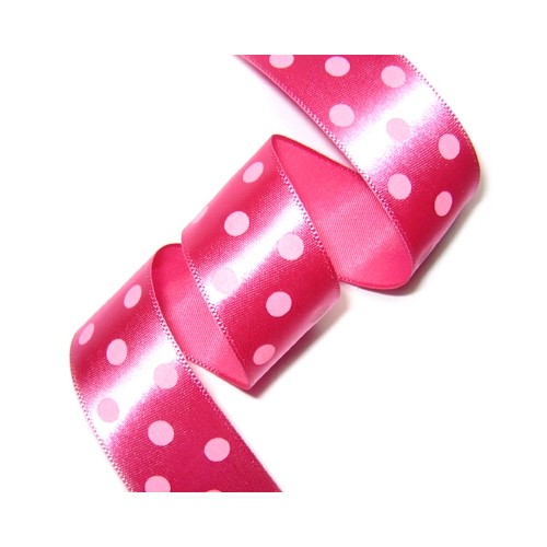 체리핑크색 공단에 연핑크색 땡땡이 프린트 리본입니다.