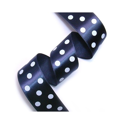 곤색 공단에 흰색 큰땡땡이 프린트 리본입니다.