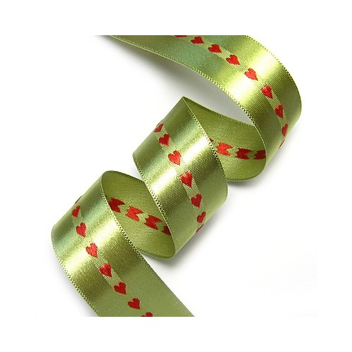 카키색 공단리본에 빨강자수하트 무늬 리본입니다.