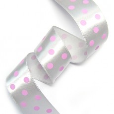노랑색 공단에 체리핑크색 큰땡땡이 프린트 리본입니다.