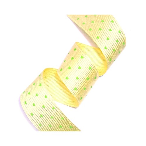 연노랑 골직 리본에 연두색 미니하트 프린트 된 리본입니다.