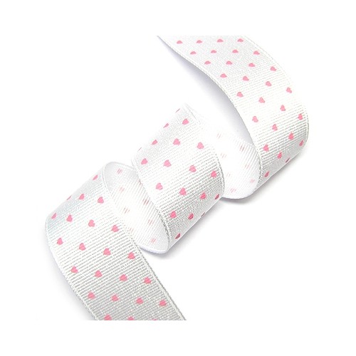 흰색 골직리본에 핑크색 미니하트 프린트 된 리본입니다.
