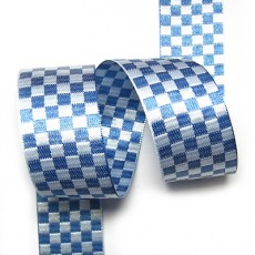 흰색,연노랑색 혼합 바둑판무의 양면주자 체크리본입니다.