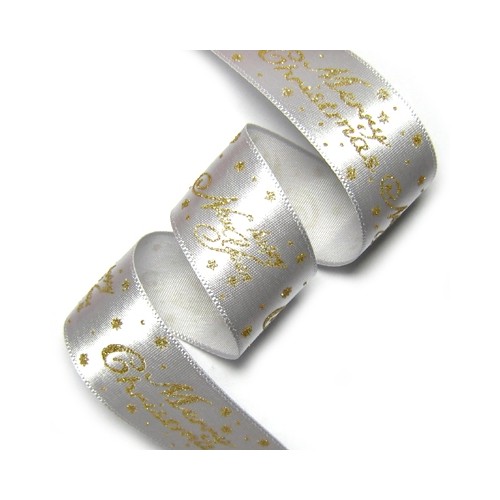 은색 공단리본에 금색반짝이 크리스마스로고가 인쇄된 반짝반짝 이쁜 리본입니다.