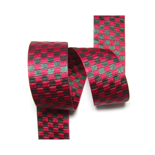 진체리색(빨강빛), 수박색 혼합 바둑판무의 양면주자 체크리본입니다.