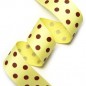 연노랑색 골직 리본에 밤색 큰 땡땡이 프린트된 리본입니다.