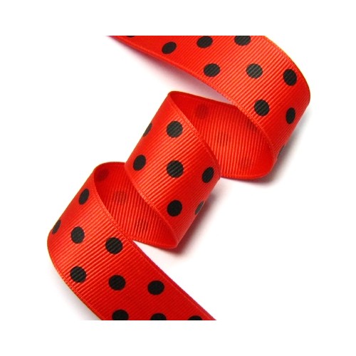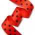 빨강색 골직 리본에 검정색 큰 땡땡이 프린트된 리본입니다.