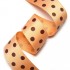 환타색 골직 리본에 밤색 큰 땡땡이 프린트된 리본입니다.