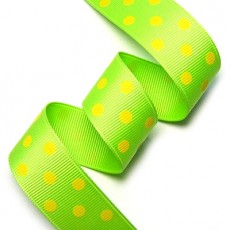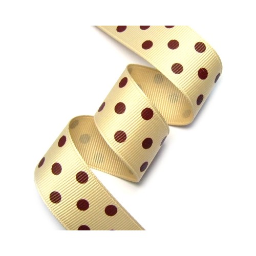 베이지색 골직리본에 밤색 큰 땡땡이 프린트된 리본입니다.