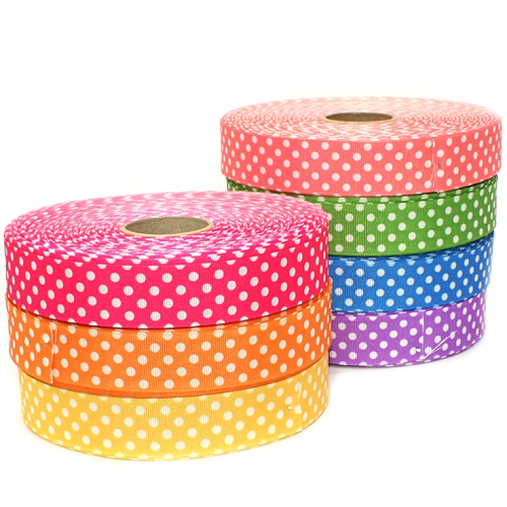 연초록/흰색땡땡이(전사프린트) > 골직 땡땡이 리본