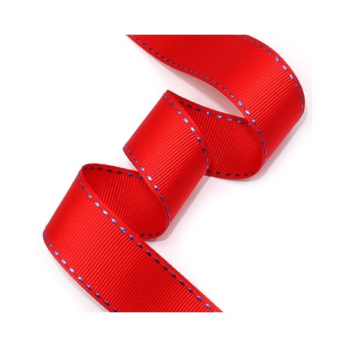 빨강색 골직리본에 파랑색실 스티치 리본입니다.