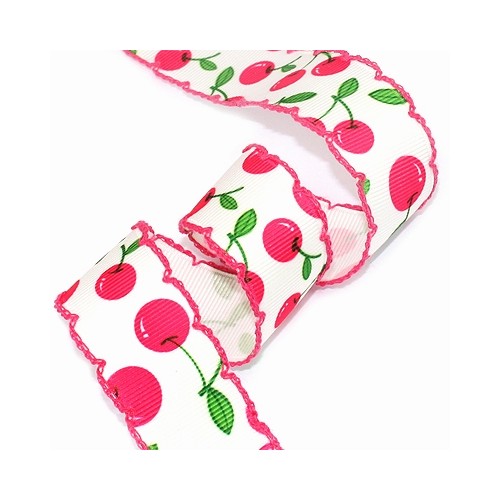 체리핑크색 큰체리 골지프린트에 체리핑크실 피코트 리본입니다.