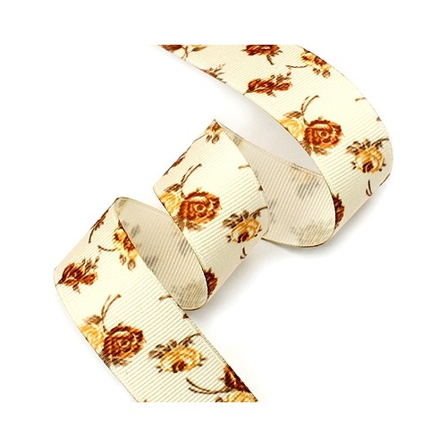 브라운톤 장미가 전사프린트 된 예쁜 리본입니다.