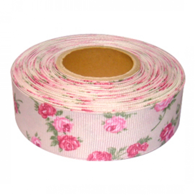 연베이지색 골지에 자주빛장미 프린트 된 예쁜 리본입니다.