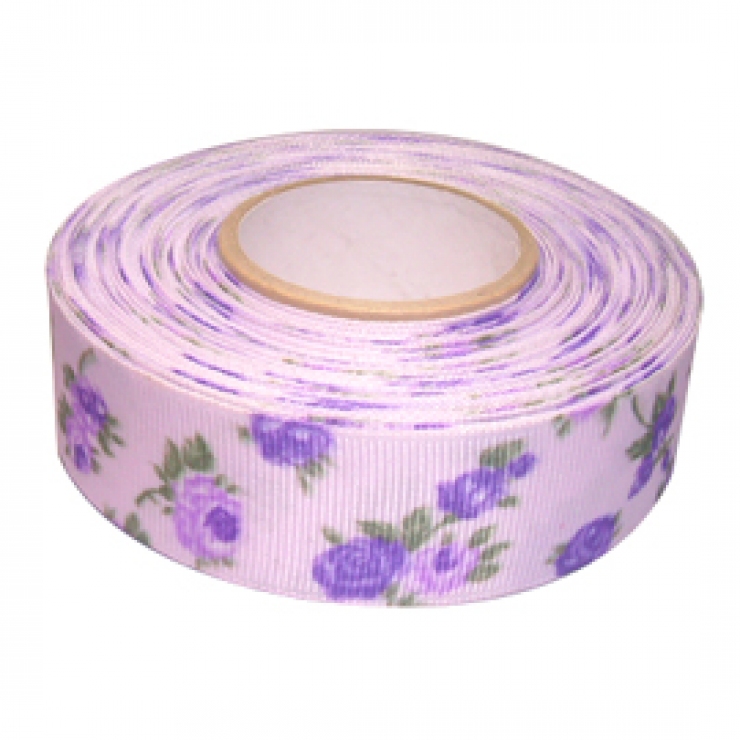 연보라색 골지에 장미 프린트 된 예쁜 리본입니다.