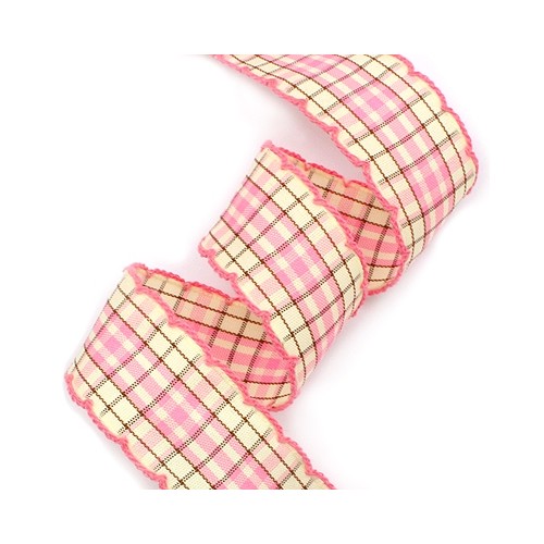 핑크 연한체크리본에 핑크색 실 피코트리본입니다.