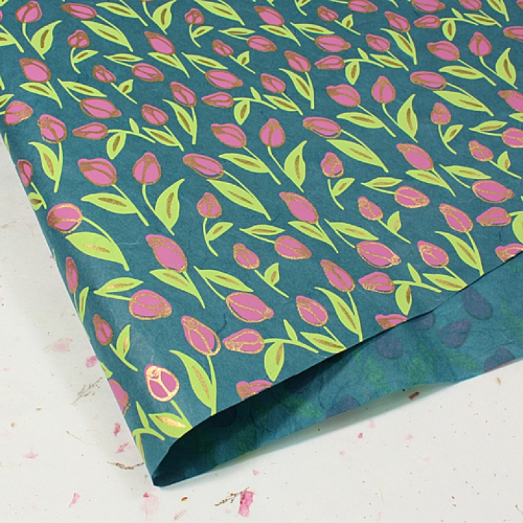 청록색/튤립(무늬한지) > 한지