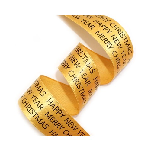 겨자색 공단리본에 검정색 영문 크리스마스 리본입니다.