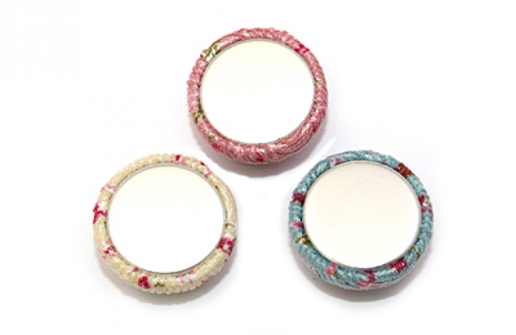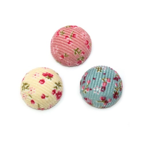 원형 모양의 볼록한 골덴 천 싸개 장식입니다.