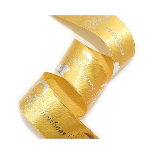 금색공단/은박곰돌이산타(크리스마스리본) > 크리스마스리본