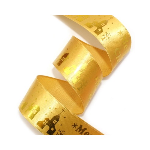 금색 공단리본에 금박 크리스마스 리본입니다.