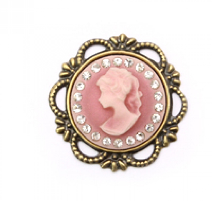 18mm 보석 원형 귀여운여인 까메오(연핑크) > 카메오