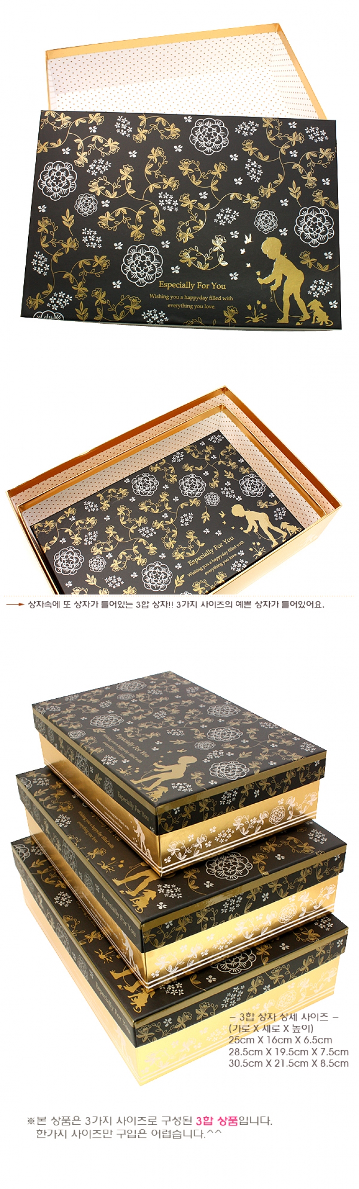 소년소녀 직사각 3합 상자(금색) > 이중상자