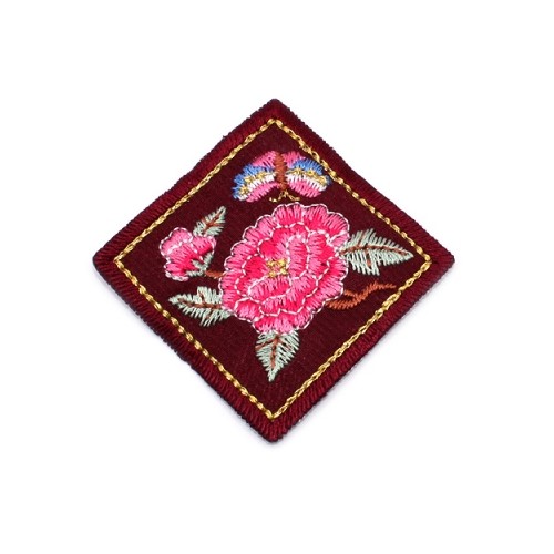 자주색/사각 꽃(자수와펜) > 와펜/자수장식