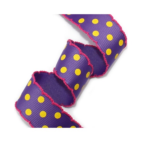 보라/노랑 골직 큰 땡땡이 리본에 체리핑크색실 피코트리본입니다.