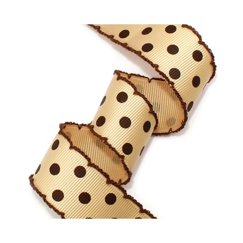 베이지/밤색 골직 큰 땡땡이 리본에 밤색색실 피코트리본입니다.