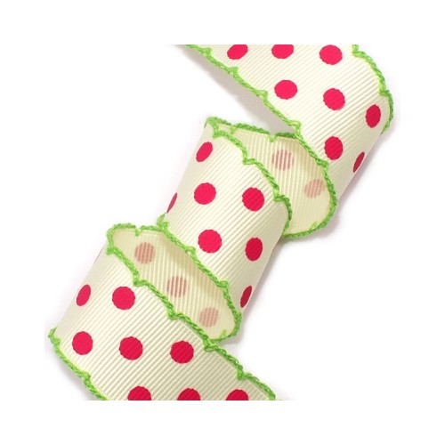 크림/체리핑크 골직 큰 땡땡이 리본에 연초록색실 피코트리본입니다.