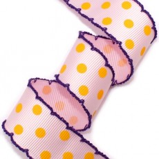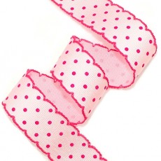 연핑크/체리핑크 골직 큰 땡땡이 리본에 체리핑크색실 피코트리본입니다.