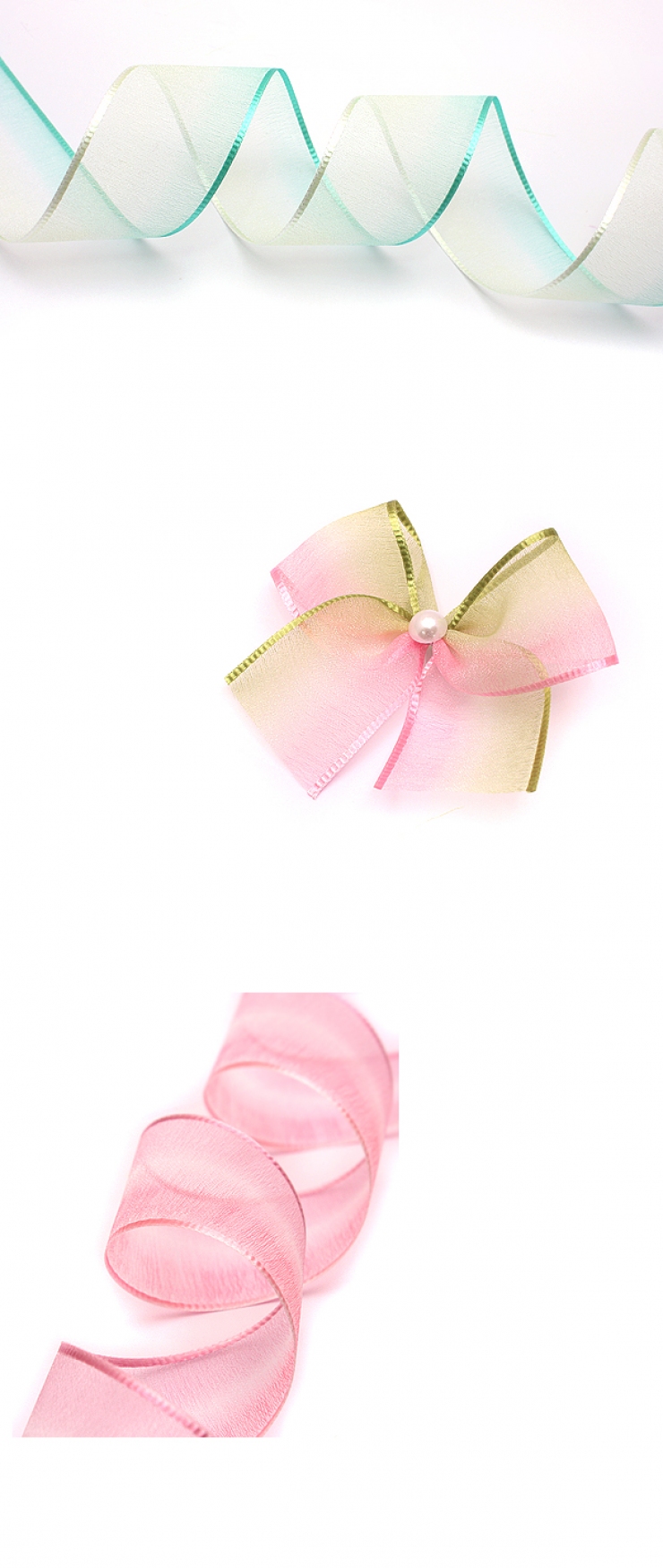 두가지 색상으로 염색된 펄 오간디리본입니다.