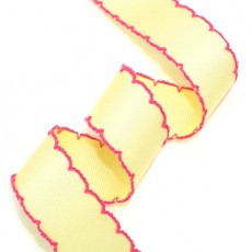 연노랑 골직리본에 체리색실 피코트 리본입니다.