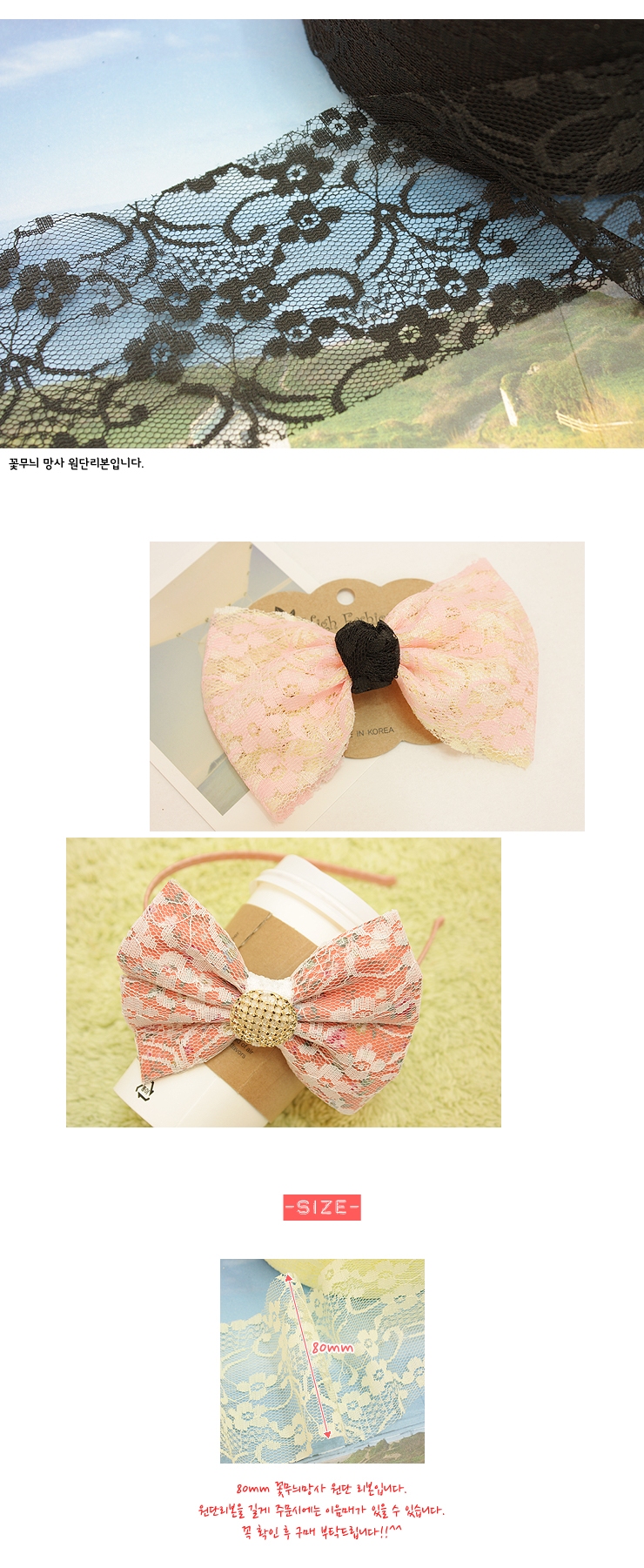 흰색/꽃무늬망사(원단리본) > 망사