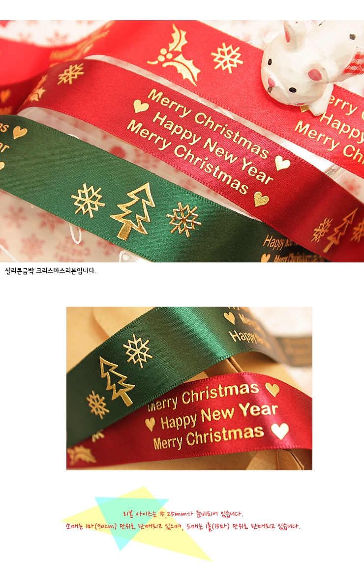 초록공단/눈꽃송이 실리콘금박(크리스마스리본) 요약정보 및 구매