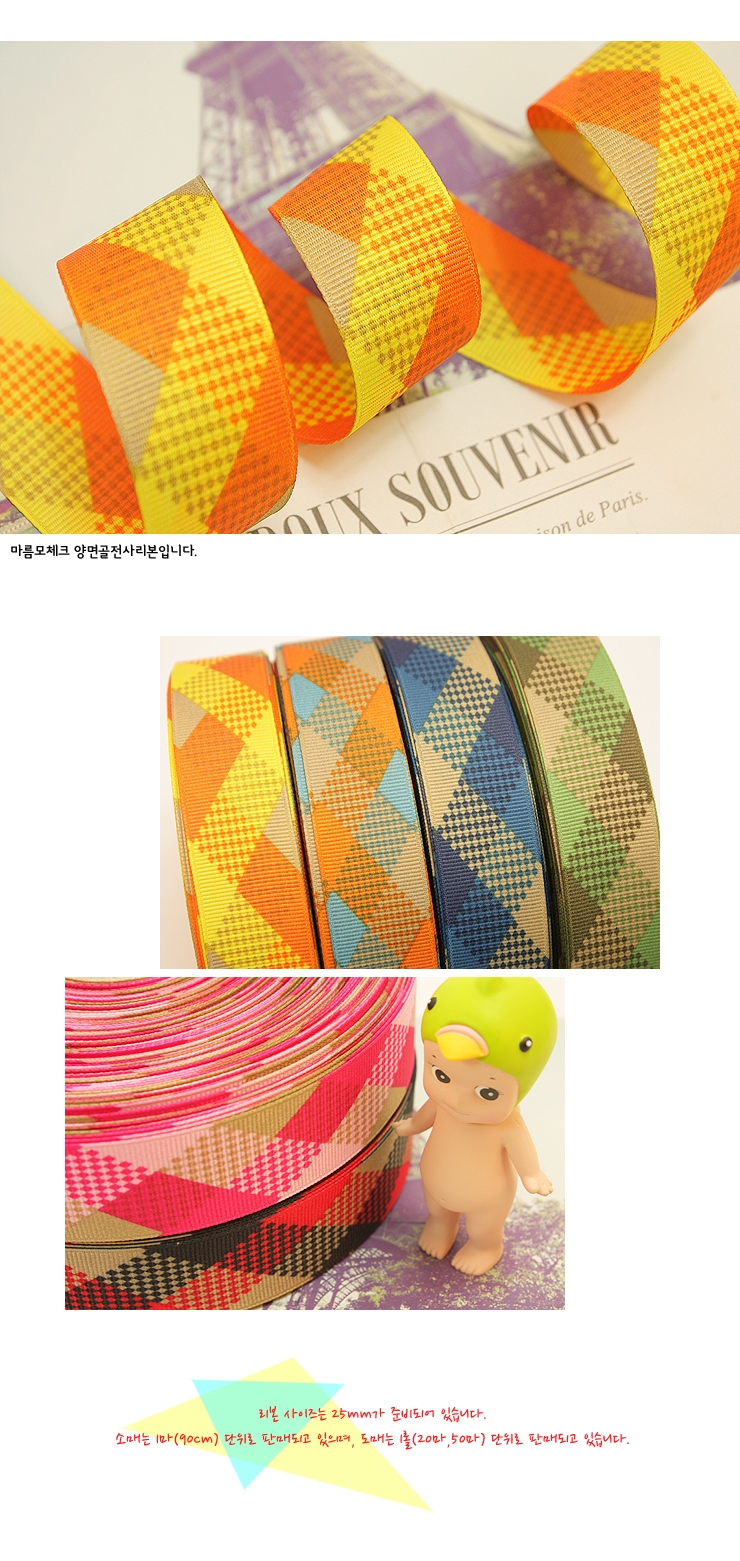 연초록/카키 마름모체크(양면골전사) > 기타프린트 리본