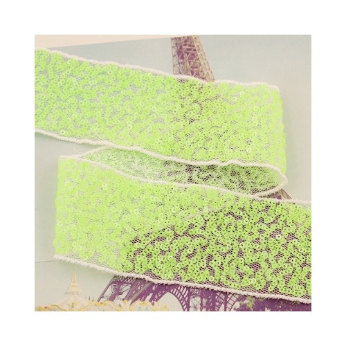 형광연두/흰색 스팽글(망사레이스) > 민자레이스