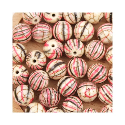 빨강/세로줄 전사라운드(원석)-10개 > 10mm 알장식
