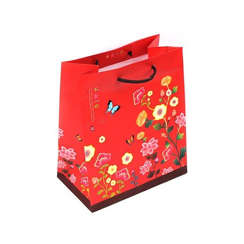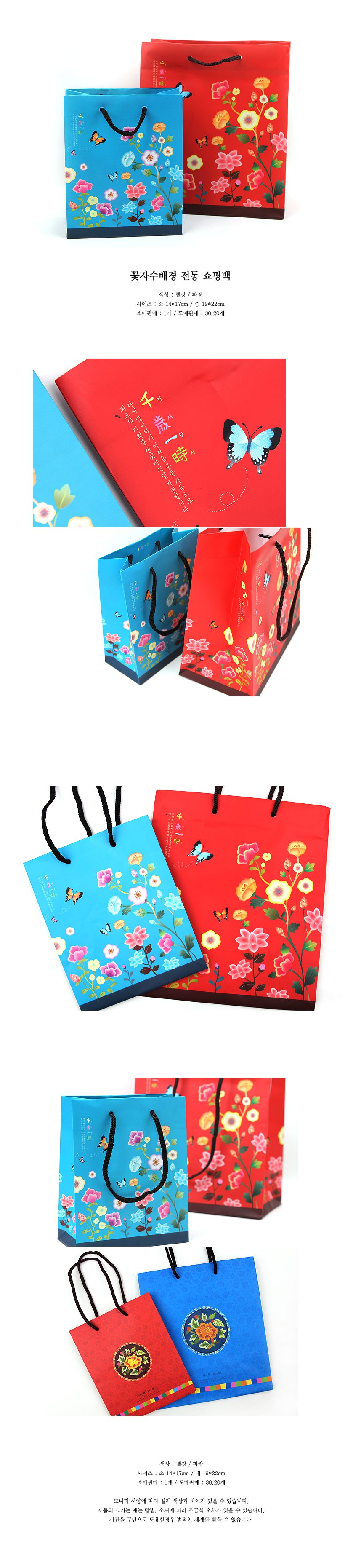 (中)빨강/꽃자수배경 전통(쇼핑백) > 쇼핑백