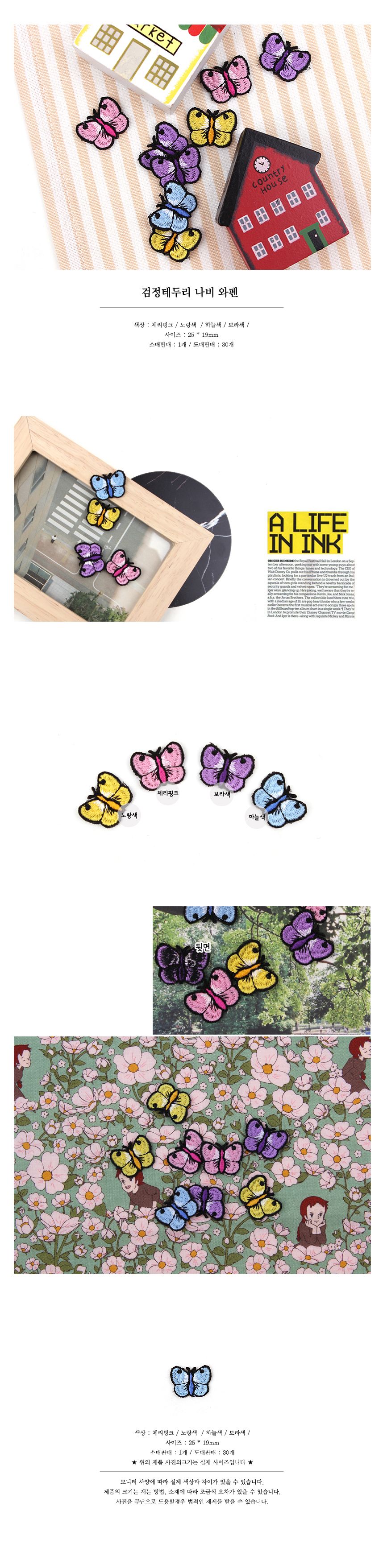 체리핑크/(大)검정테두리 나비와펜(자수와펜) > 와펜/자수장식